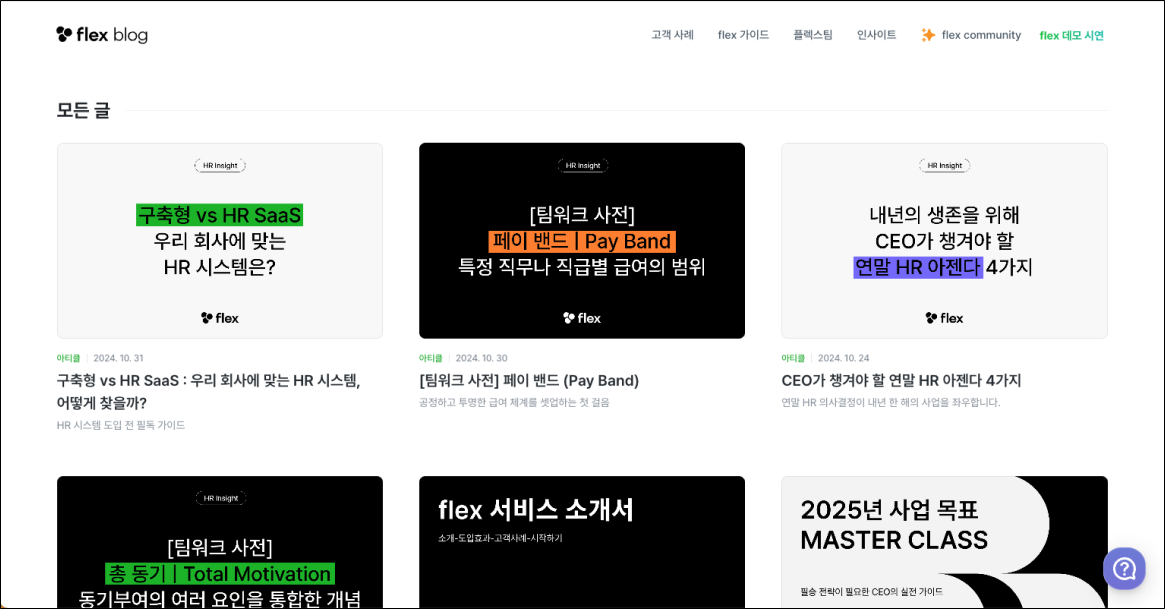 - 카테고리: 고객사례, 플렉스 가이드, 팀 뉴스, HR 인사이트 등