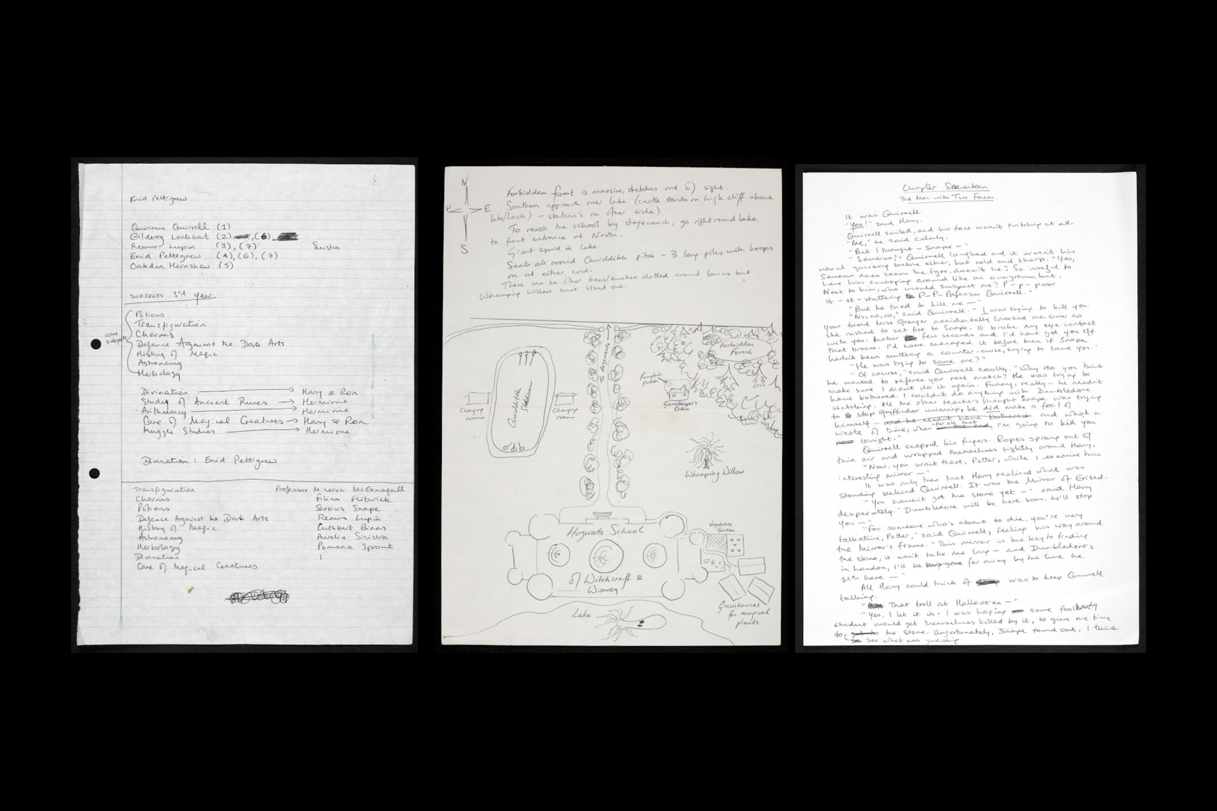 영국국립도서관 특별 전시에는 J.K. 롤링이 자필로 적은 다양한 해리포터 관련 원고와 메모들이 공개되었습니다. J.K. 롤링은 컴퓨터보다 펜과 종이를 선호한다고 하며 특히 초고를 적을 때는 노트에 손으로 적는다고 밝혔습니다.