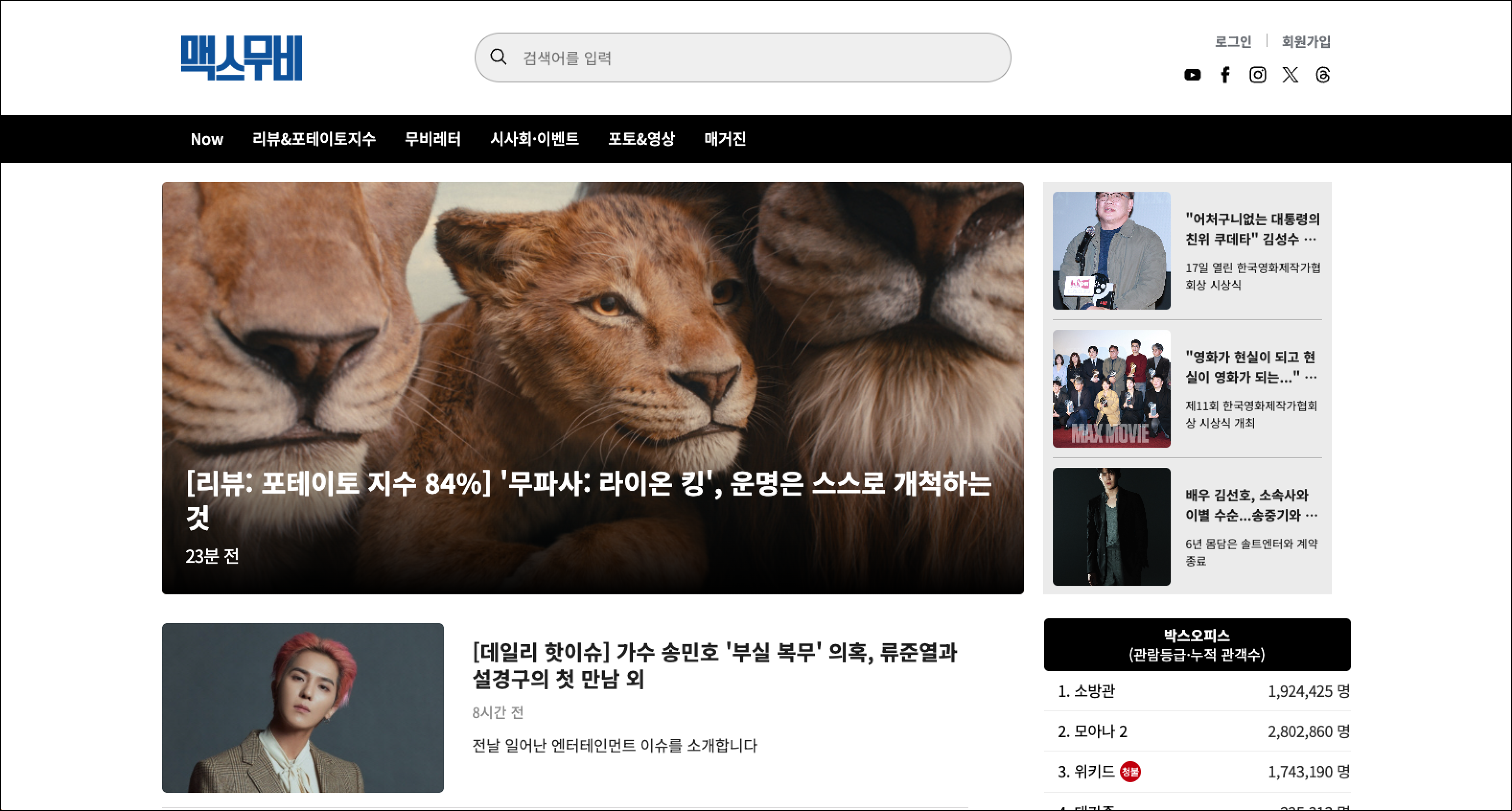 지금은 웹진이 된 맥스무비 사이트 고민 없이 입사하셨나요?
