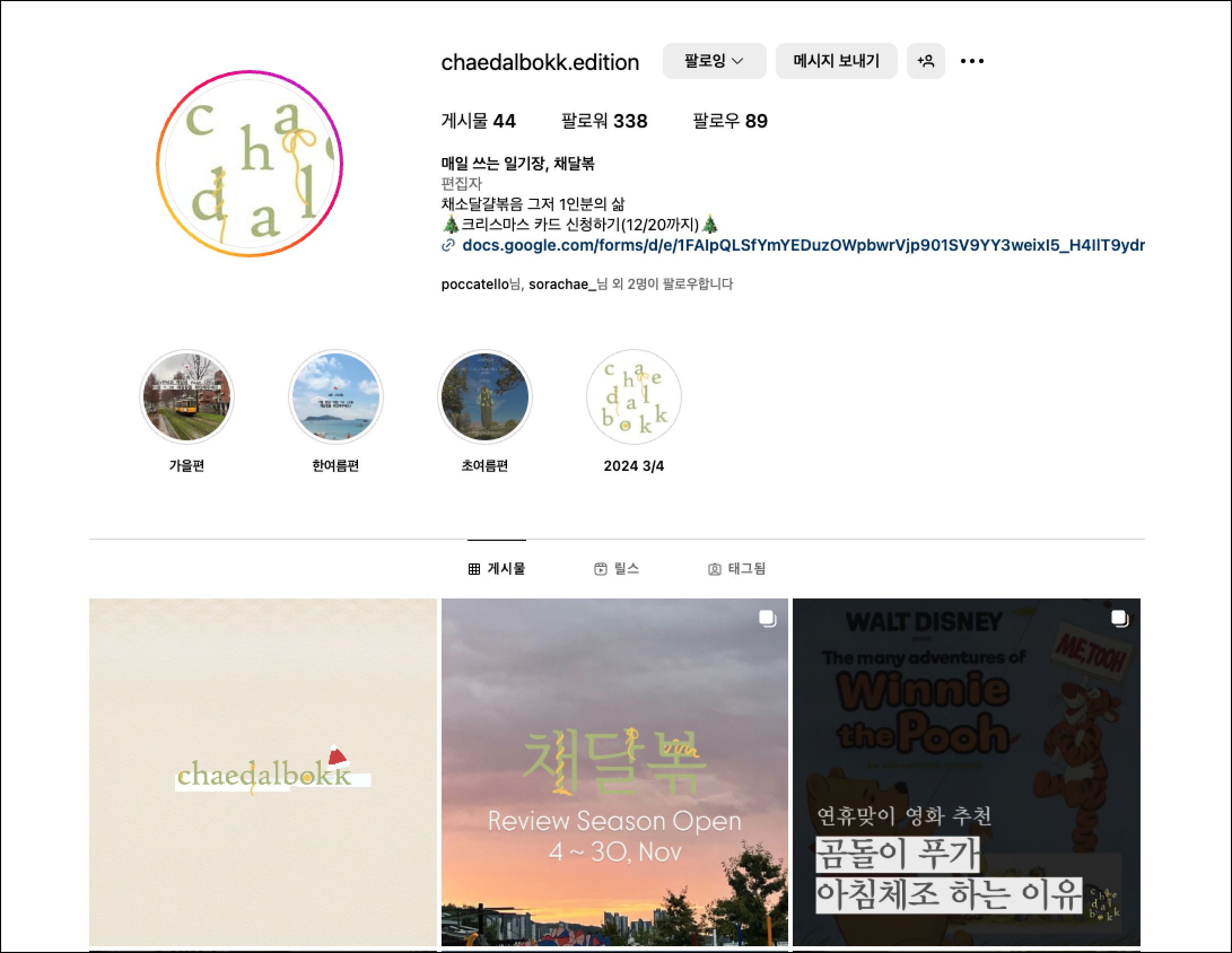 안녕하세요. 프리랜서 에디터 채소라입니다. 영화, 시계 전문 매거진 회사에서 영화와 시계를 소개하는 일을 했어요. 지금은 영화진흥위원회 Kobiz(Korean Film Biz Zone)에 가끔 한국 영화 뉴스를 쓰고 취미로 영화 리뷰, 에세이를 쓰고 있습니다.