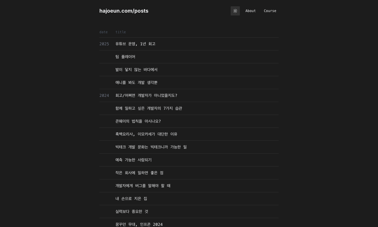 그래서 최신 개발 패러다임 같은 주제를 많이 썼는데 이런 글들은 일단 쓰고 나면 쓴 내용이 기술적으로 맞는지 검증하는데 너무 많은 시간이 걸렸어요. 지금처럼 AI로 확인할 수도 없는 시기였고요. 글을 올렸는데 틀린 게 있어서 욕먹으면 어쩌나 걱정도 되었죠. 그런데 욕먹는 건 둘째 치고 기술 글에 관심 있는 사람이 너무 없을 확률이 크다는 게 제일 문제였습니다.