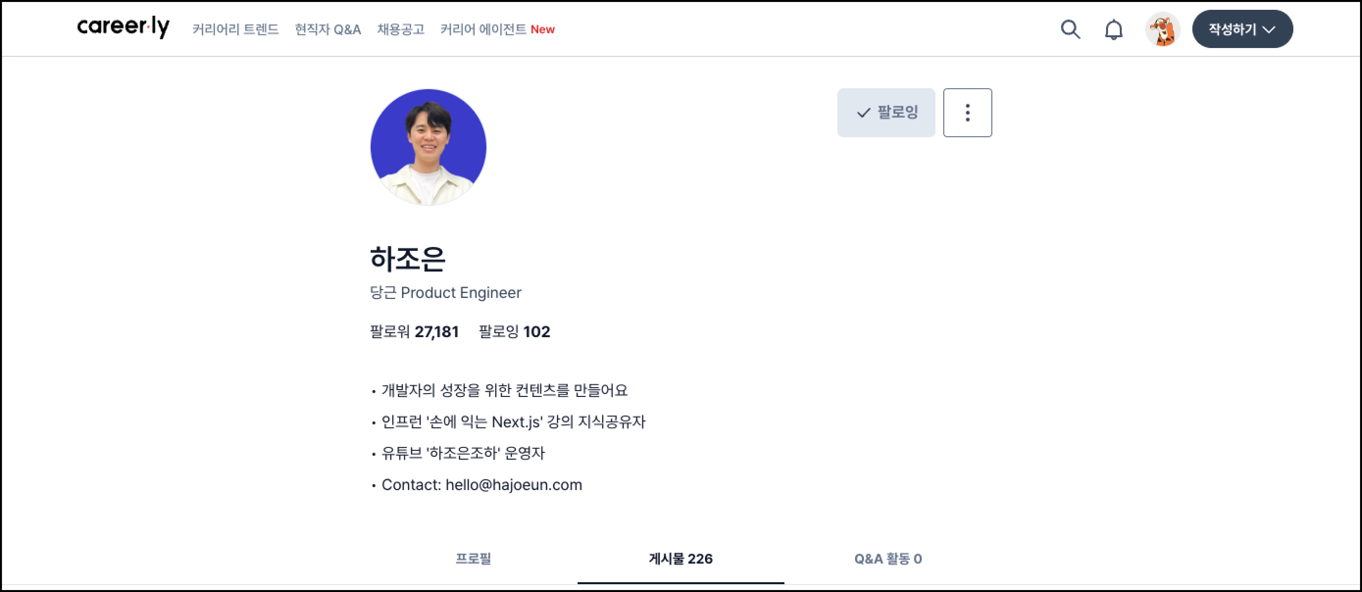2만 7천 명이 넘는 팔로워를 보유하고 계신 조은님의 커리어리 계정 좋은 글을 쓰기 위한 팁이나 노하우도 알려주세요.