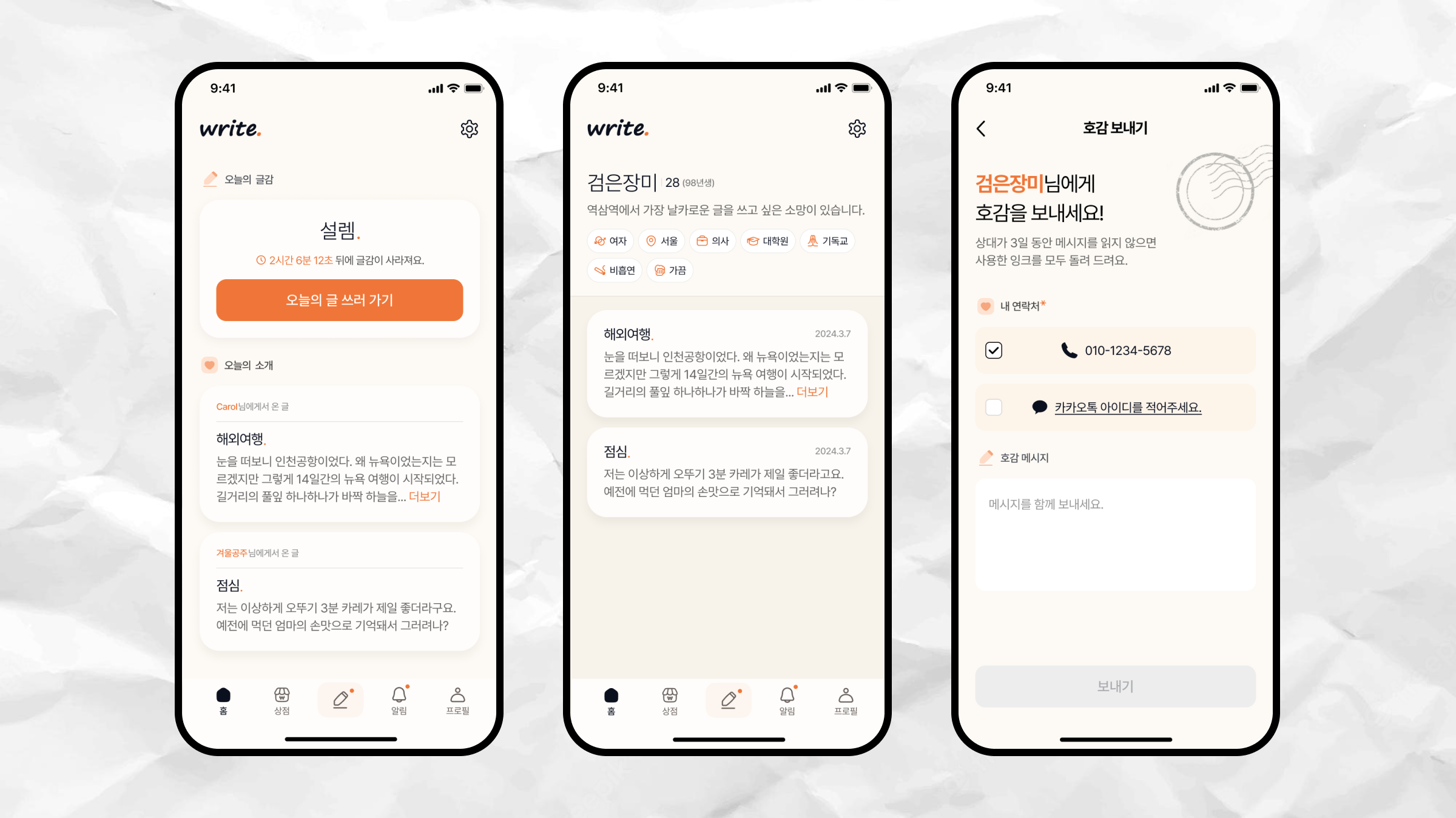 글쓰기 데이팅앱 write. 사진이 없는 데이팅앱이다. 누구에게 추천하실 수 있을까요?