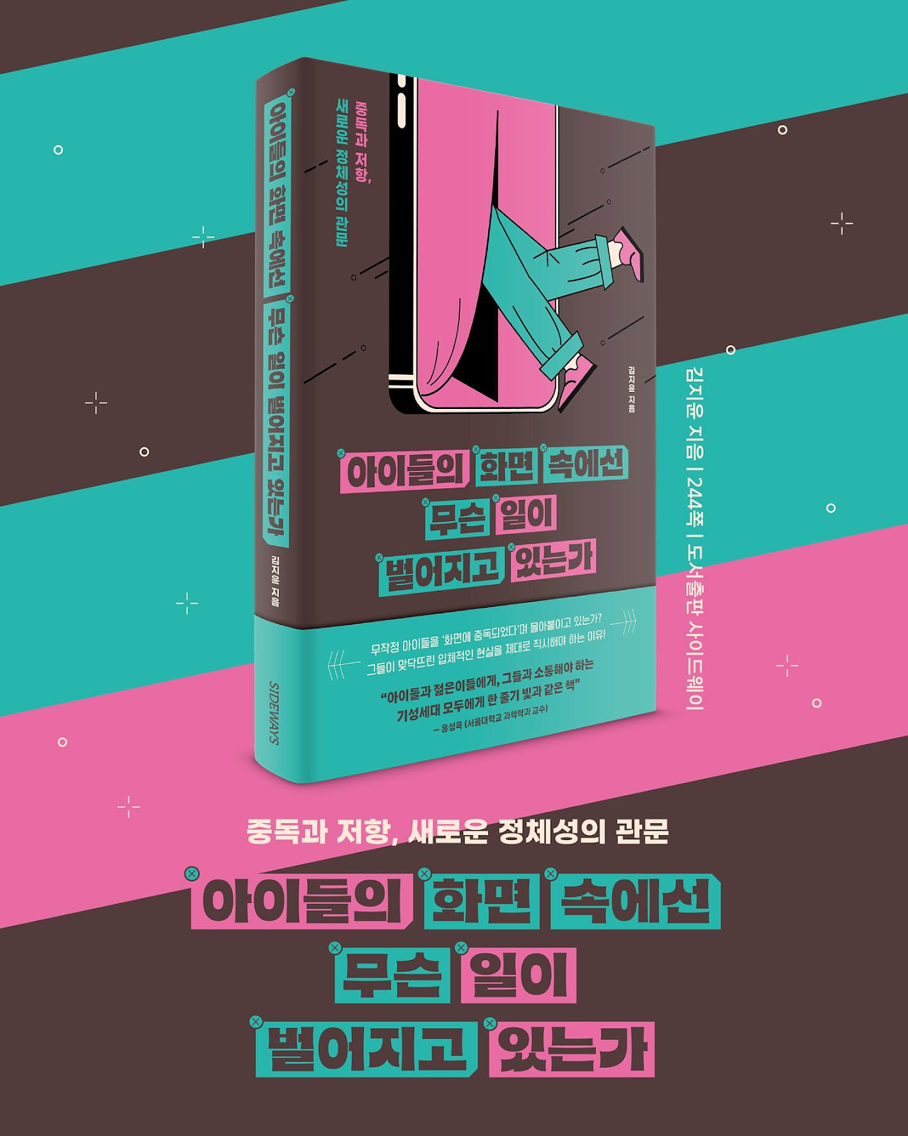 뜨거운 정도인가요?(웃음) 2024년 3월에 『아이들의 화면 속에선 무슨 일이 벌어지고 있는가』라는 사회과학 책을 출간했습니다. 이 책은 디지털 미디어를 가까이 두고 살아가는 현대인의 삶을 ‘아이들의 화면'이라는 키워드로 들여다보는 내용이에요. 사람들은 아이들과 자신을 분리해 ‘그러면 안 된다'고 가르치게 되는데요. 사실 아이들이 어떻게 화면에 적응하고 저항하는지 살펴보면 어른들이 배울 점이 있다고 생각했습니다. 적응과 저항 사이에서 위태로운 아이들의 면면을 조명하면서 앞으로 이 사회가 어떻게 디지털 미디어와 더불어 살아갈지 고고해 보고자 했습니다.