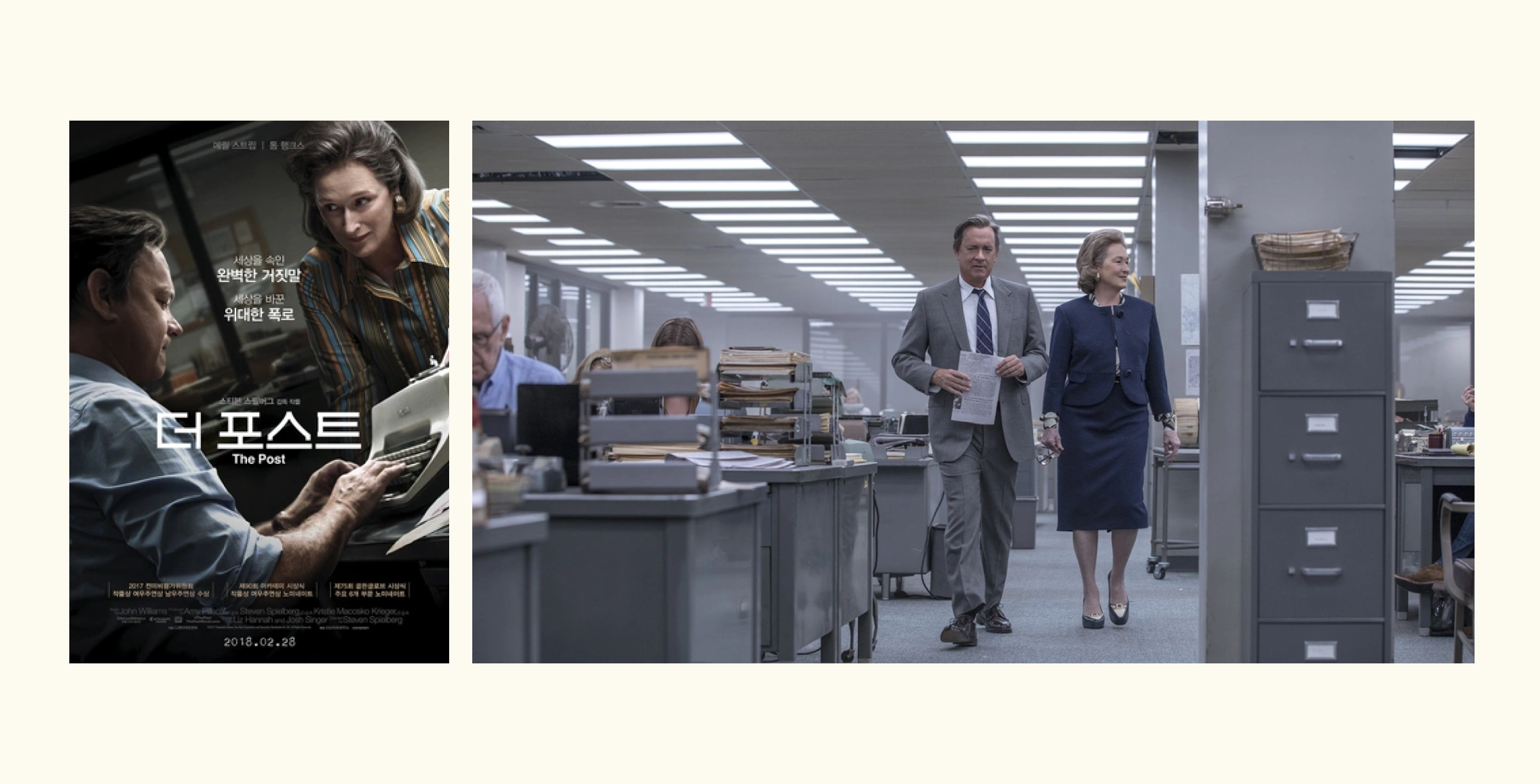 관람: 티빙, 쿠팡플레이, 왓챠글에 대해서 얘기할 때 언론은 자주 주인공으로 등장하곤 합니다. 스티븐 스필버그 감독이 연출하고 메릴 스트립과 톰 행크스가 출연한 <더 포스트>는 베트남전의 실상을 담은 미국 국방부의 비밀문서, ‘펜타곤 페이퍼’가 유출되었을 때 워싱턴포스트가 언론의 자유를 위해 이 내용을 보도한 실화를 바탕으로 제작된 영화입니다. 글을 쓴다는 것의 무게가 잘 표현된 영화가 아닌가 싶네요.